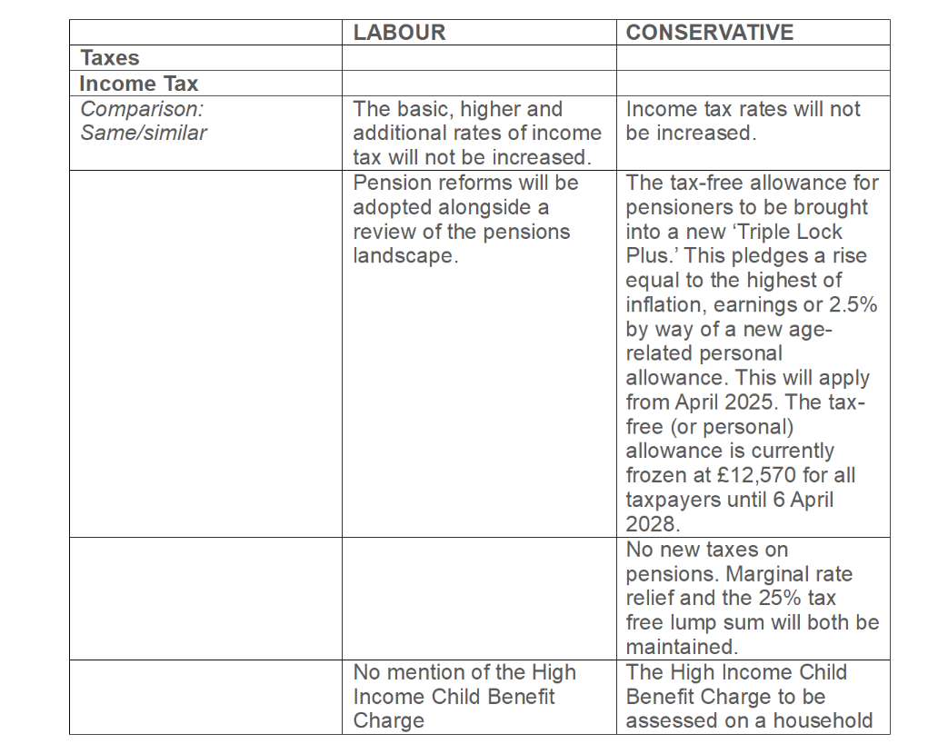 Here is a comparison table of what Labour and the Conservatives say in their manifestos about tax.